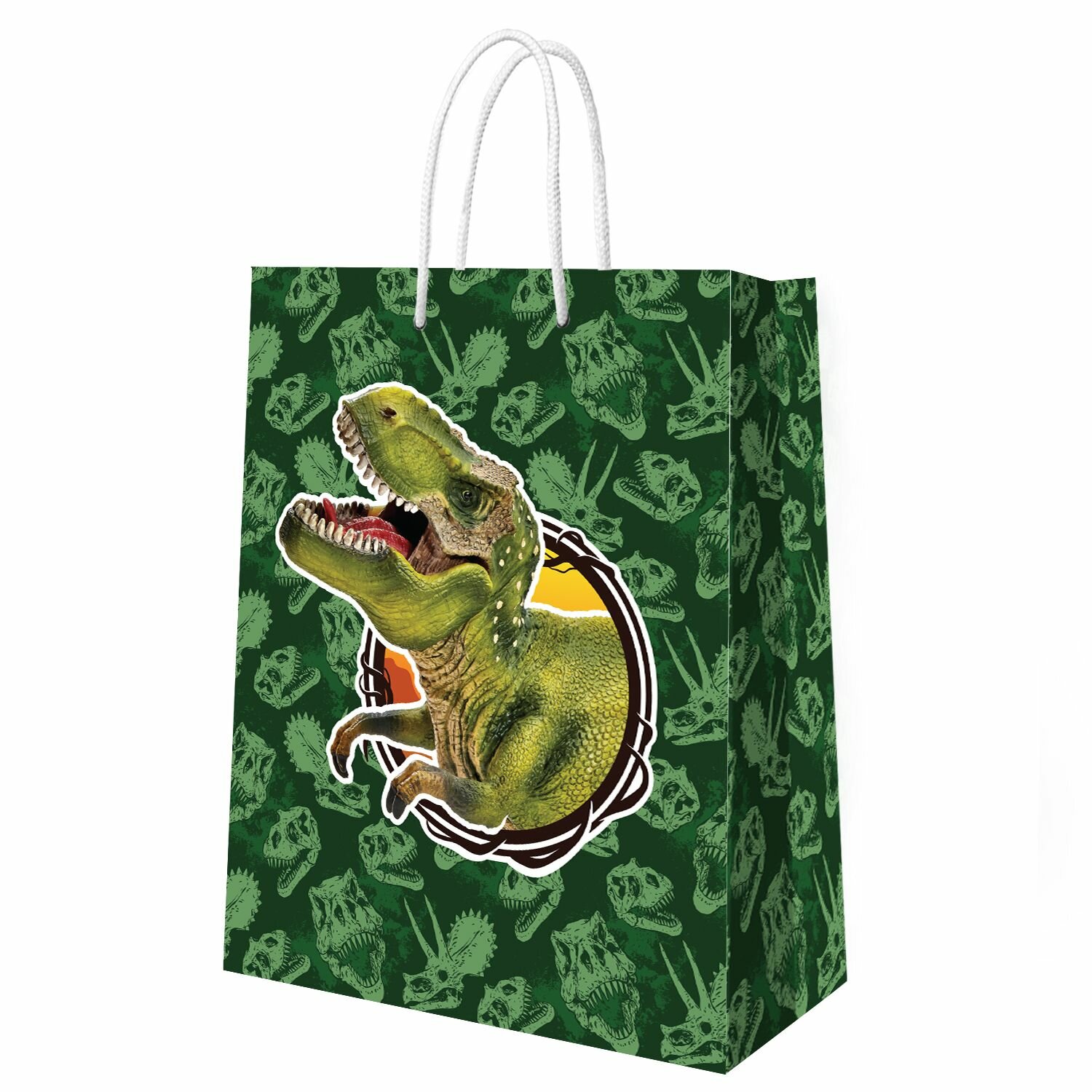 Купить Пакет подарочный Динозавр на зеленом паттерне, 335*406*155 мм, ND Play