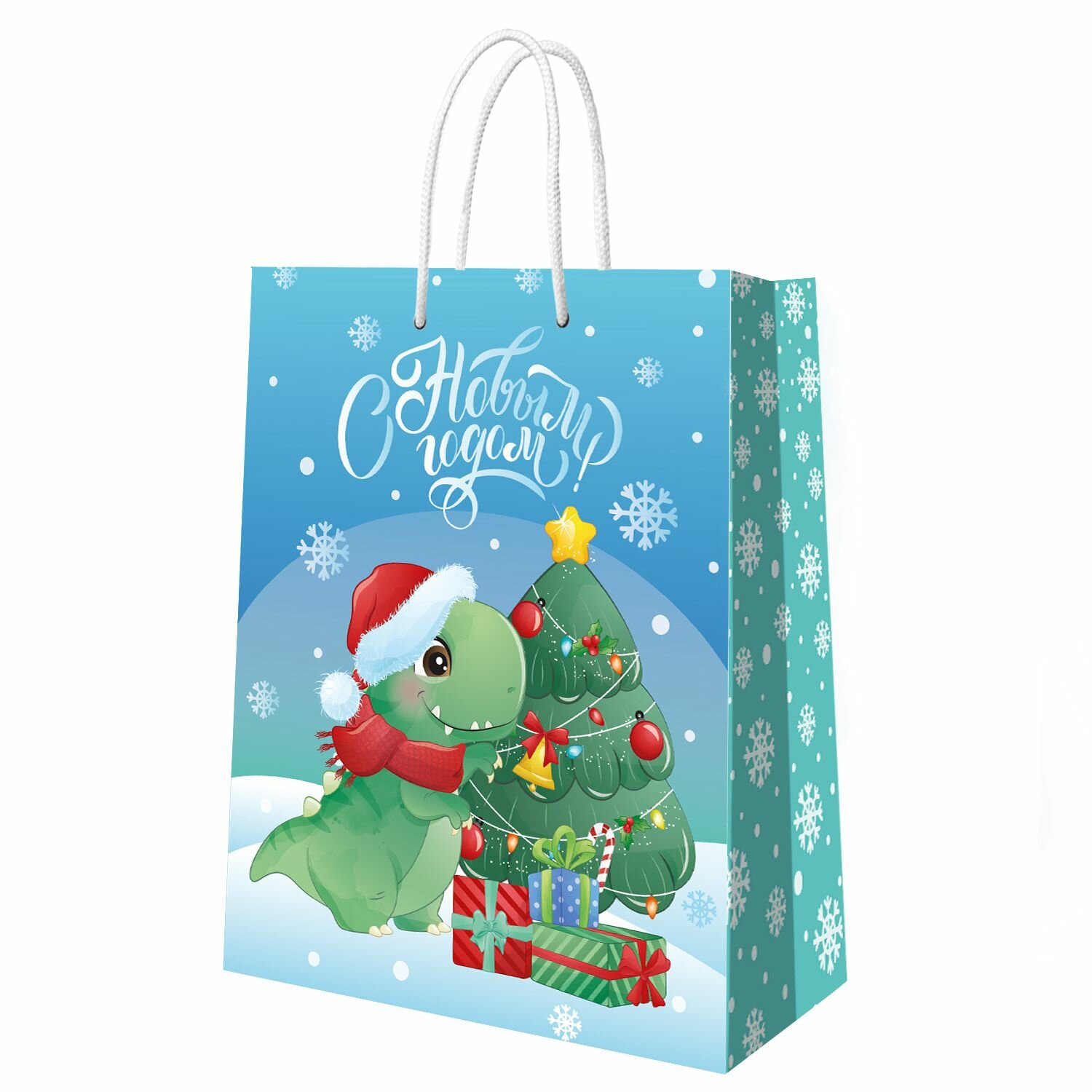 Купить Пакет подарочный Динозаврик новогодний, 335*406*155 мм, ND Play