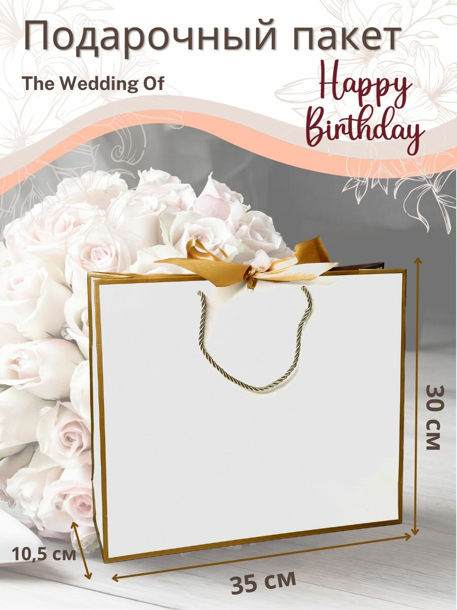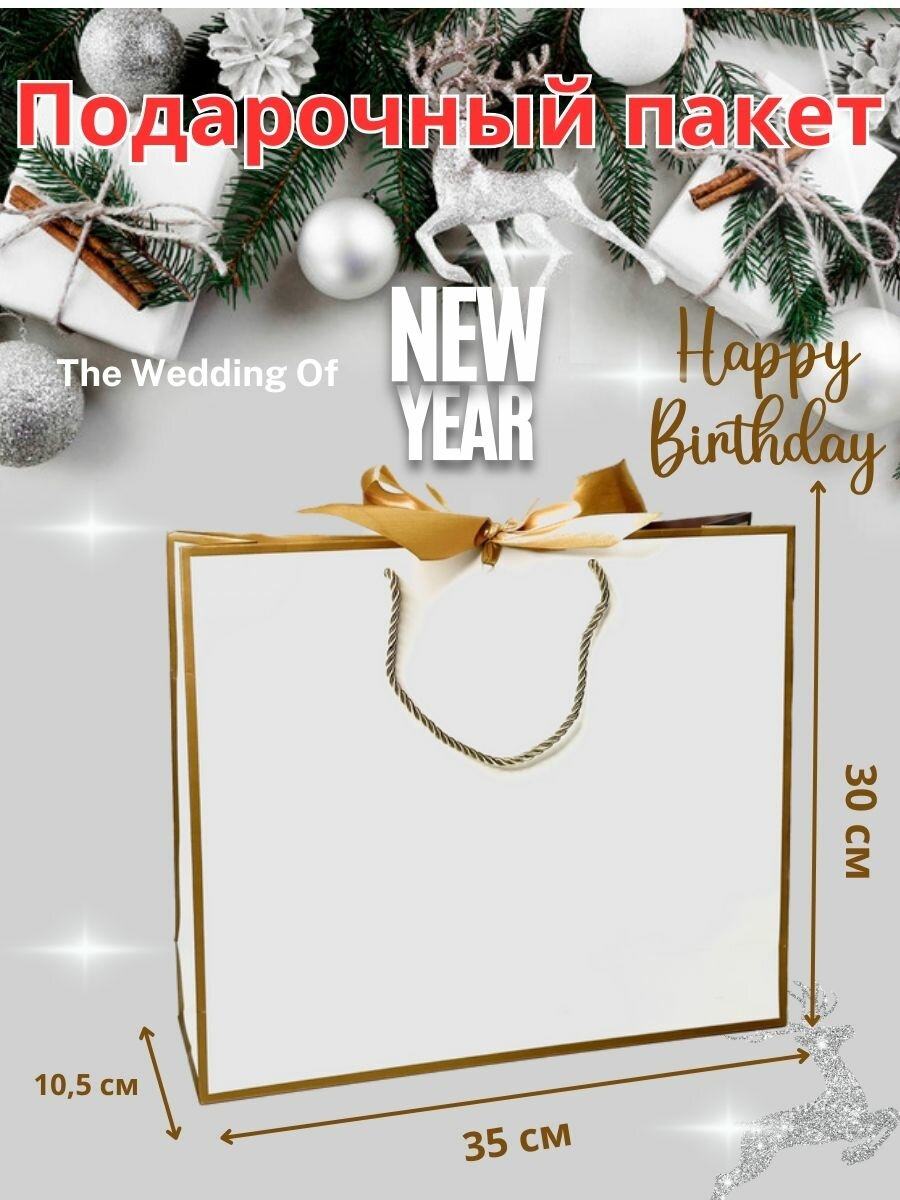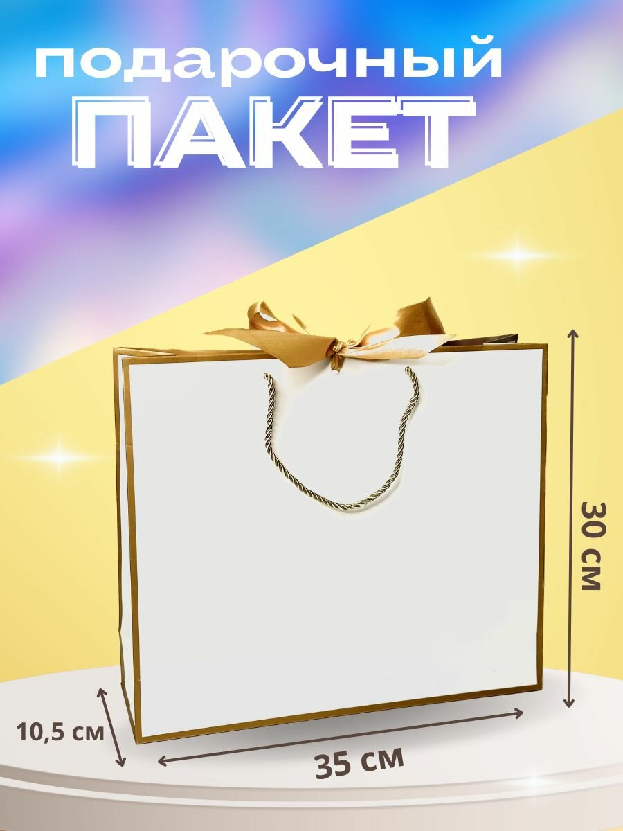 Пакет подарочный с лентой "Белый" большой 30х35х10,5 интересное: