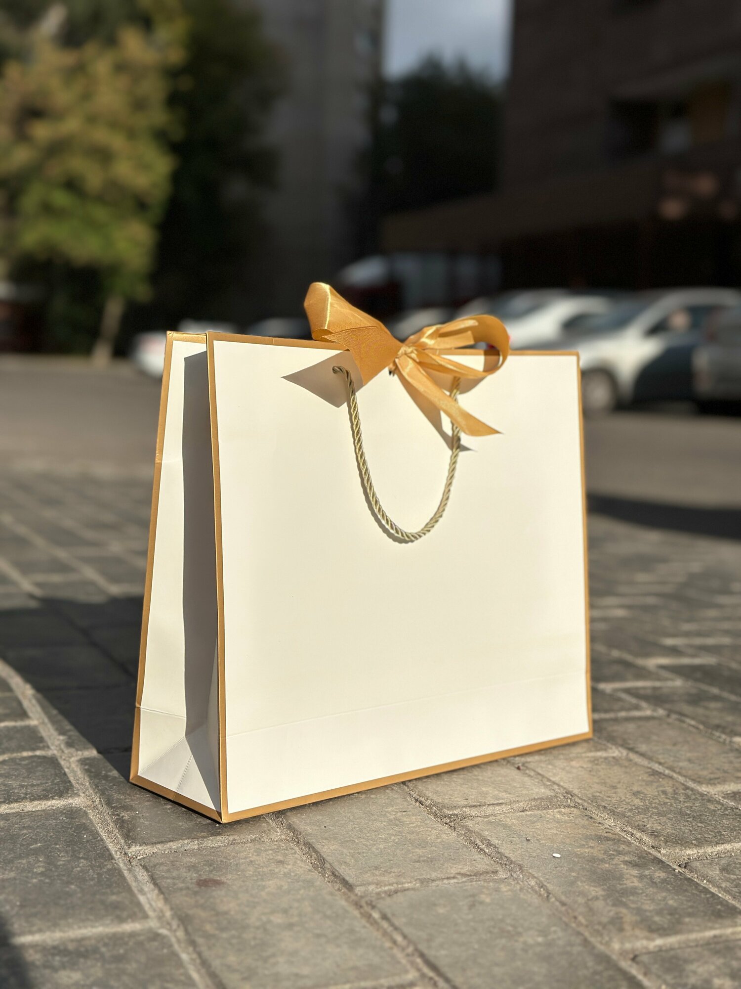 Купить Пакет подарочный с лентой "Белый" большой 30х35х10,5
