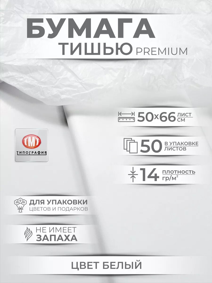 Купить Упаковочная бумага тишью от бренда Типография "ТМТ", 50х66см, набор 50 листов, цвет белый