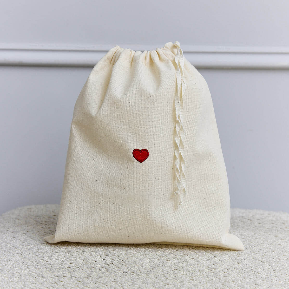 Купить Мешок подарочный Берегите птиц с вышивкой Сердце, хлопок, 100%, бежевый, 31x26 см