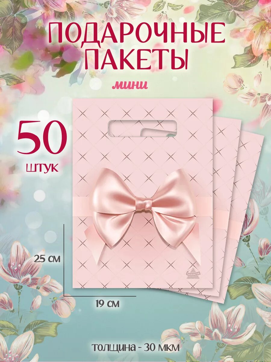 Набор подарочных пакетов с ручками "Бант" 25х19 см, 30 шт, упаковка подарков в школу
