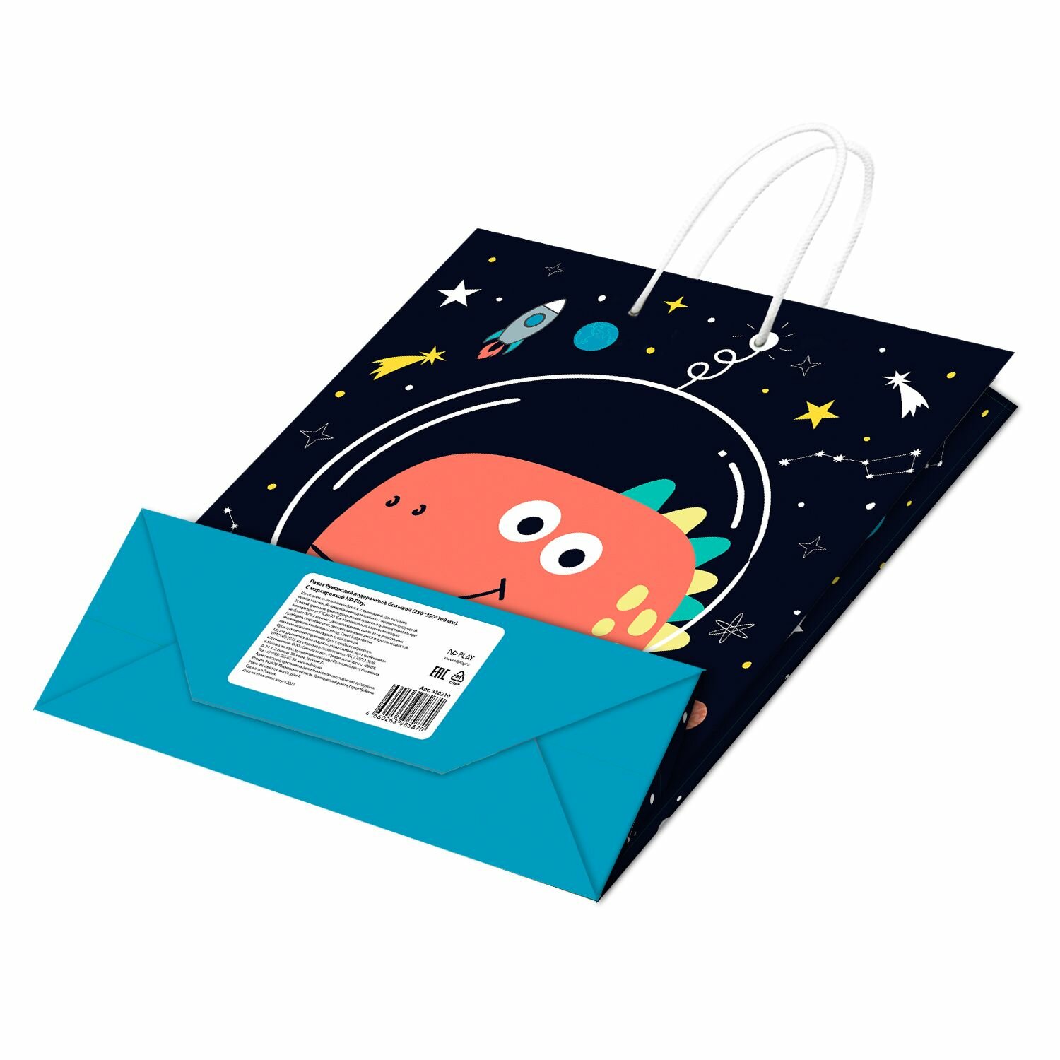 Купить Пакет подарочный Дино в космосе, 250 х 350 х 100 мм, ND Play