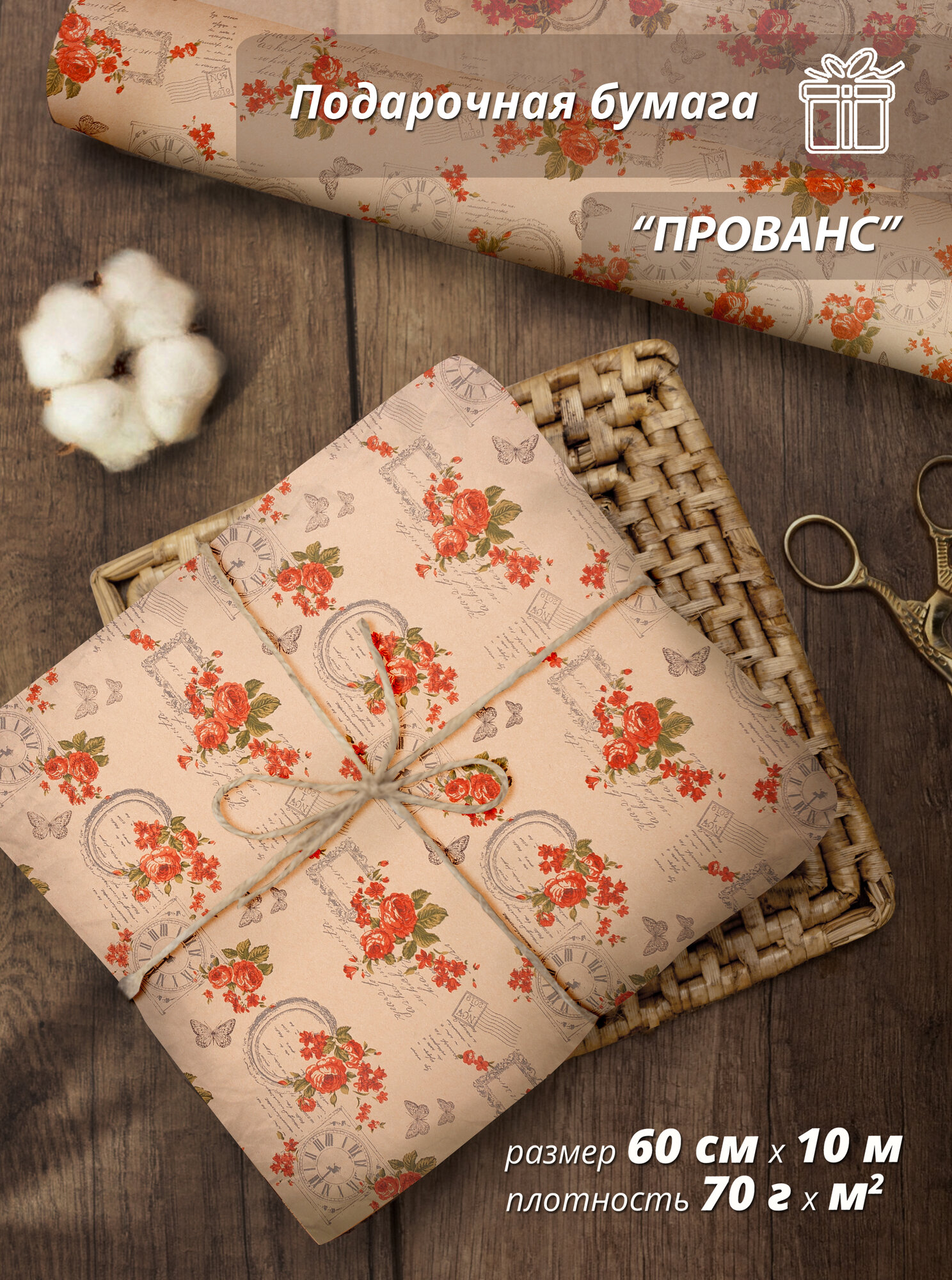 Купить Упаковочная бумага Woodenking "Прованс" 60 см* 10 м, для подарков и цветов, подарочная, флористическая, в рулоне