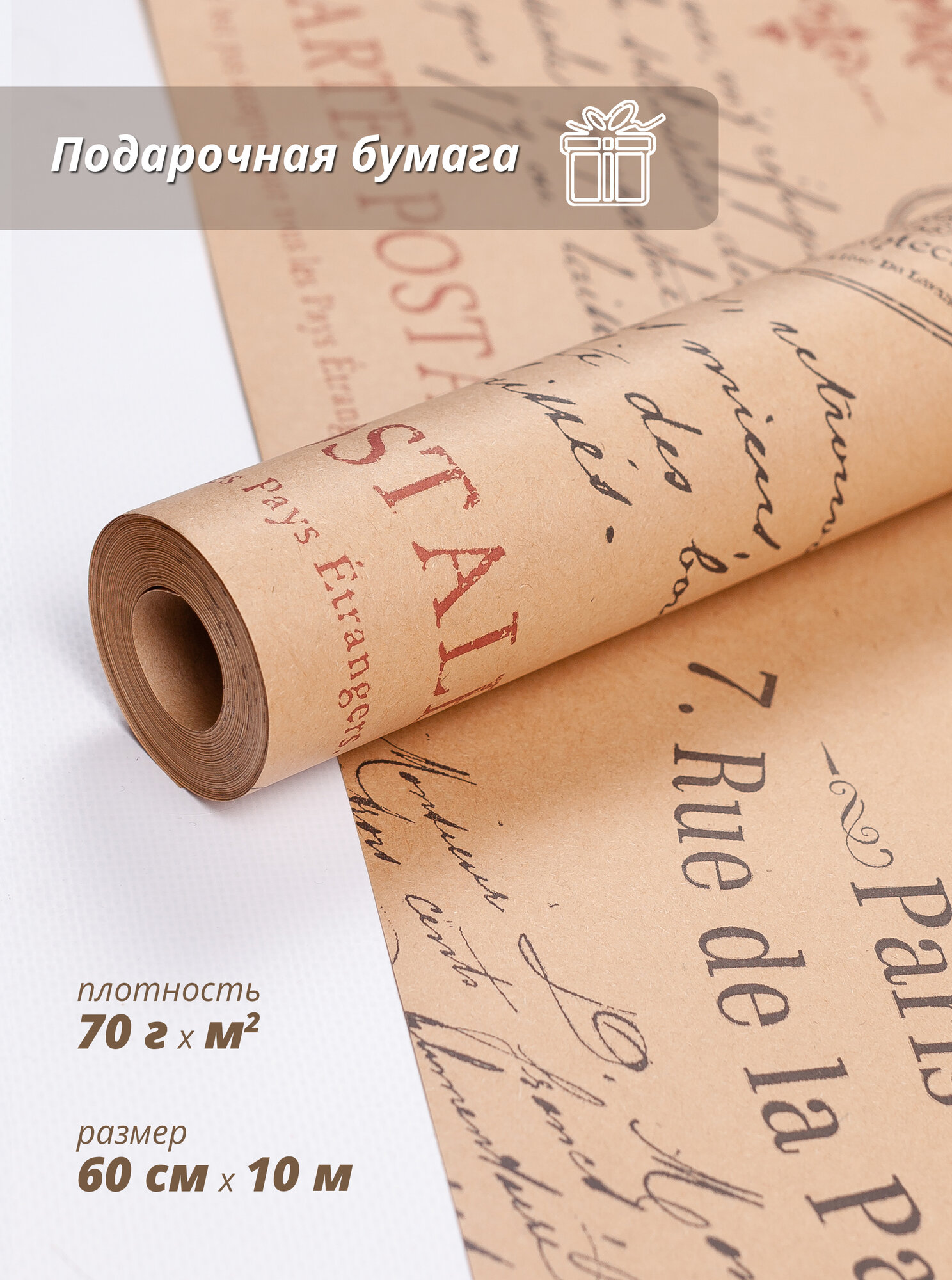 Упаковочная бумага Woodenking "Письмо в Европу" 60 см*10 м, для подарков и цветов, подарочная, флористическая, в рулоне