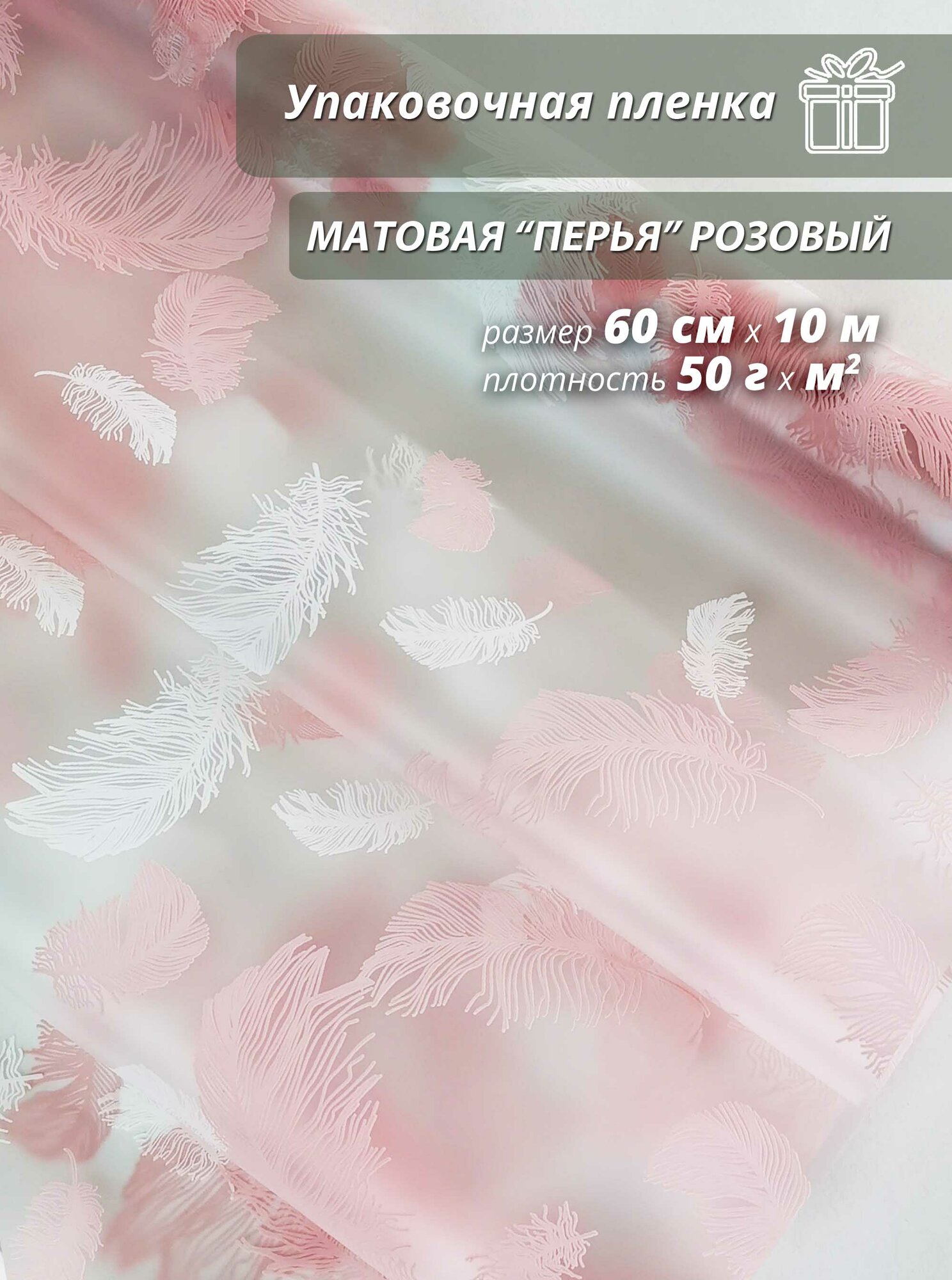 Купить Подарочная упаковочная пленка Woodenking матовая в рулонах 60см*10м розовая оберточная для цветов и подарков "Перья"