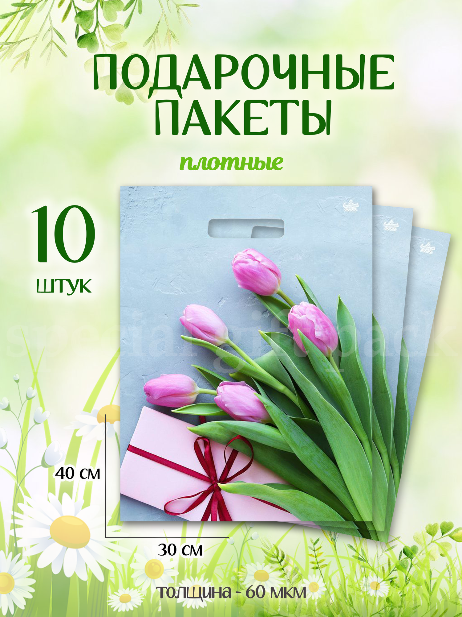 Набор подарочных пакетов с ручками "Тюльпаны" 30х40 см, 10 шт интересное: