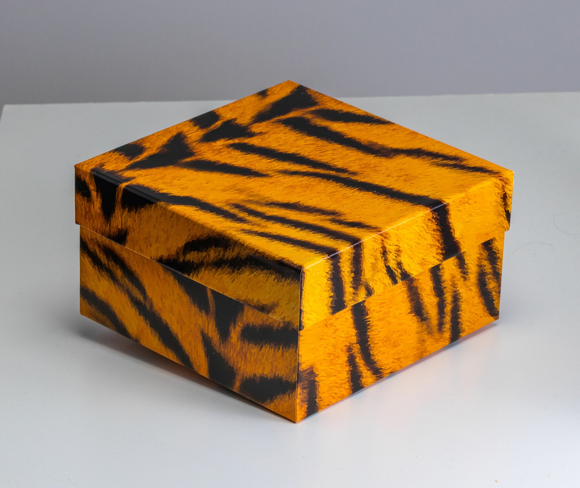 Купить Квадратная коробка крышка-дно, 19 x 19 x 10,5 см. "Animals", тигр, оранжевый, белый