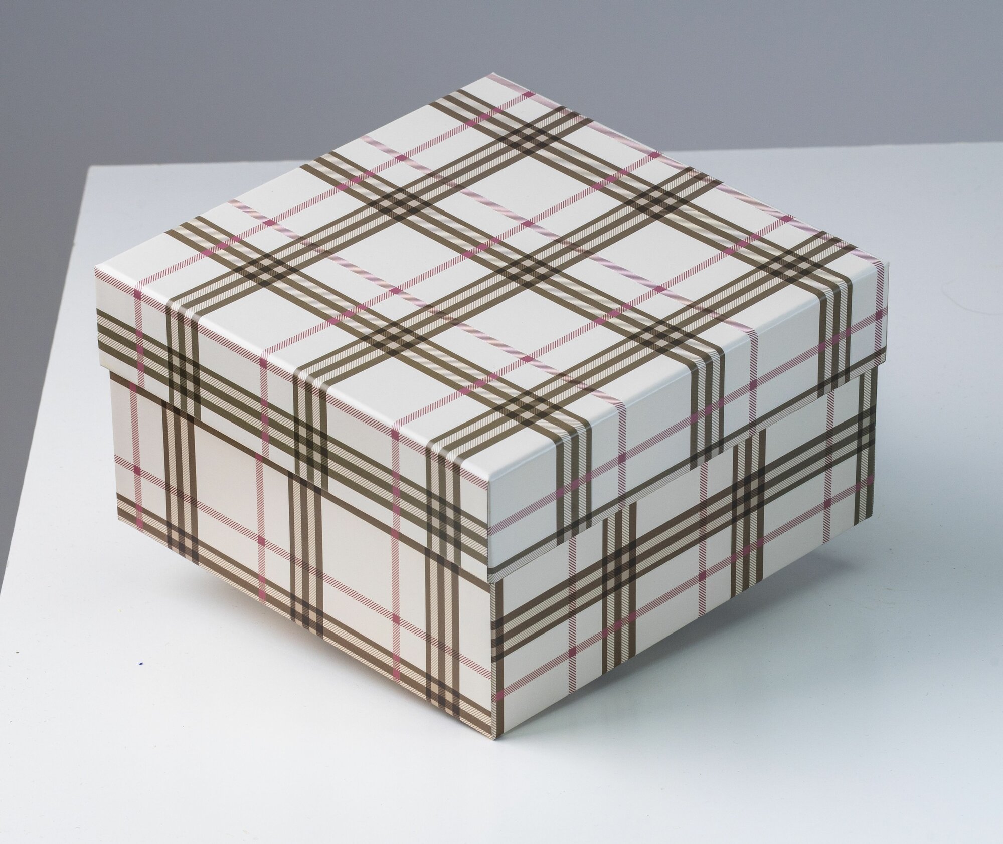Купить Коробка подарочная крышка-дно, квадратная 19 x 19 x 10,5 см. "Клетка", бежевый, белый