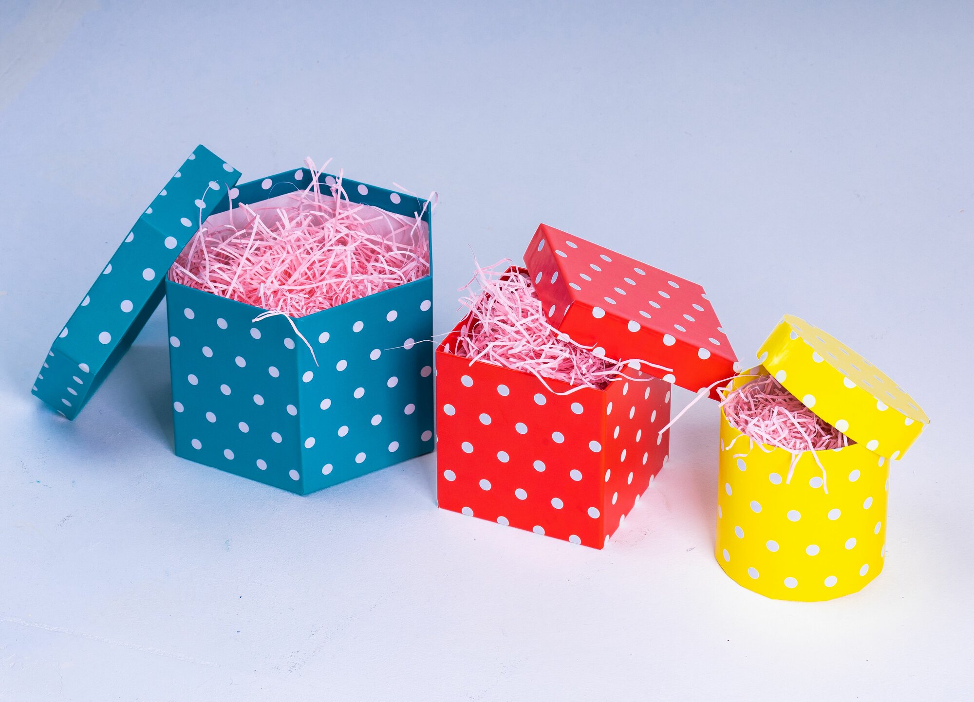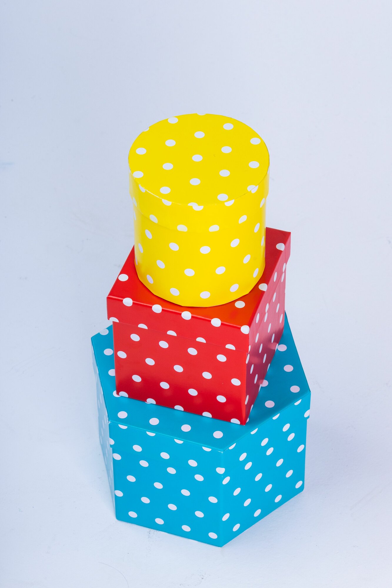 Купить Подарочная коробка фигурная, набор 3 в 1, 12 х 12 - 22 х 19 х 14.5 см. "Веселые горошки", разноцветный
