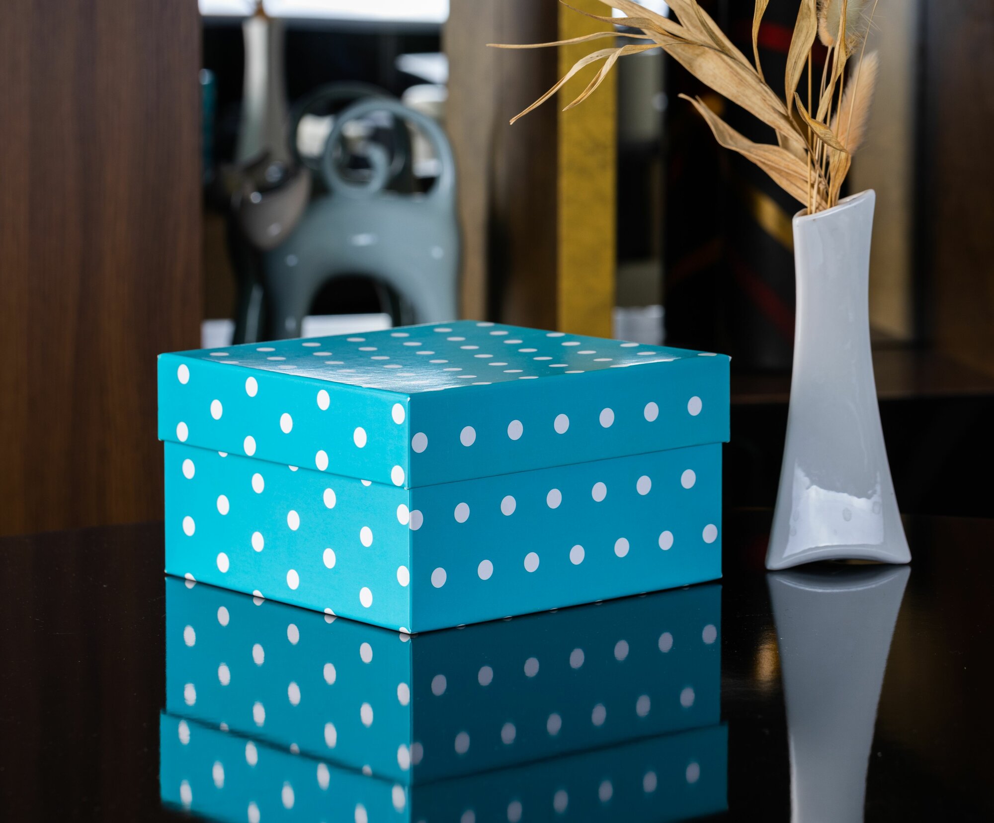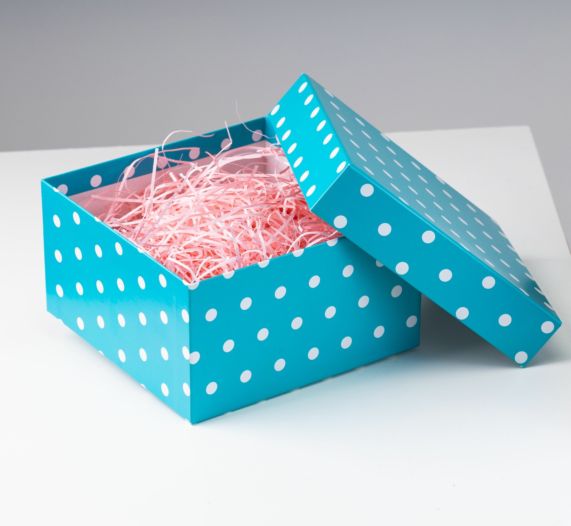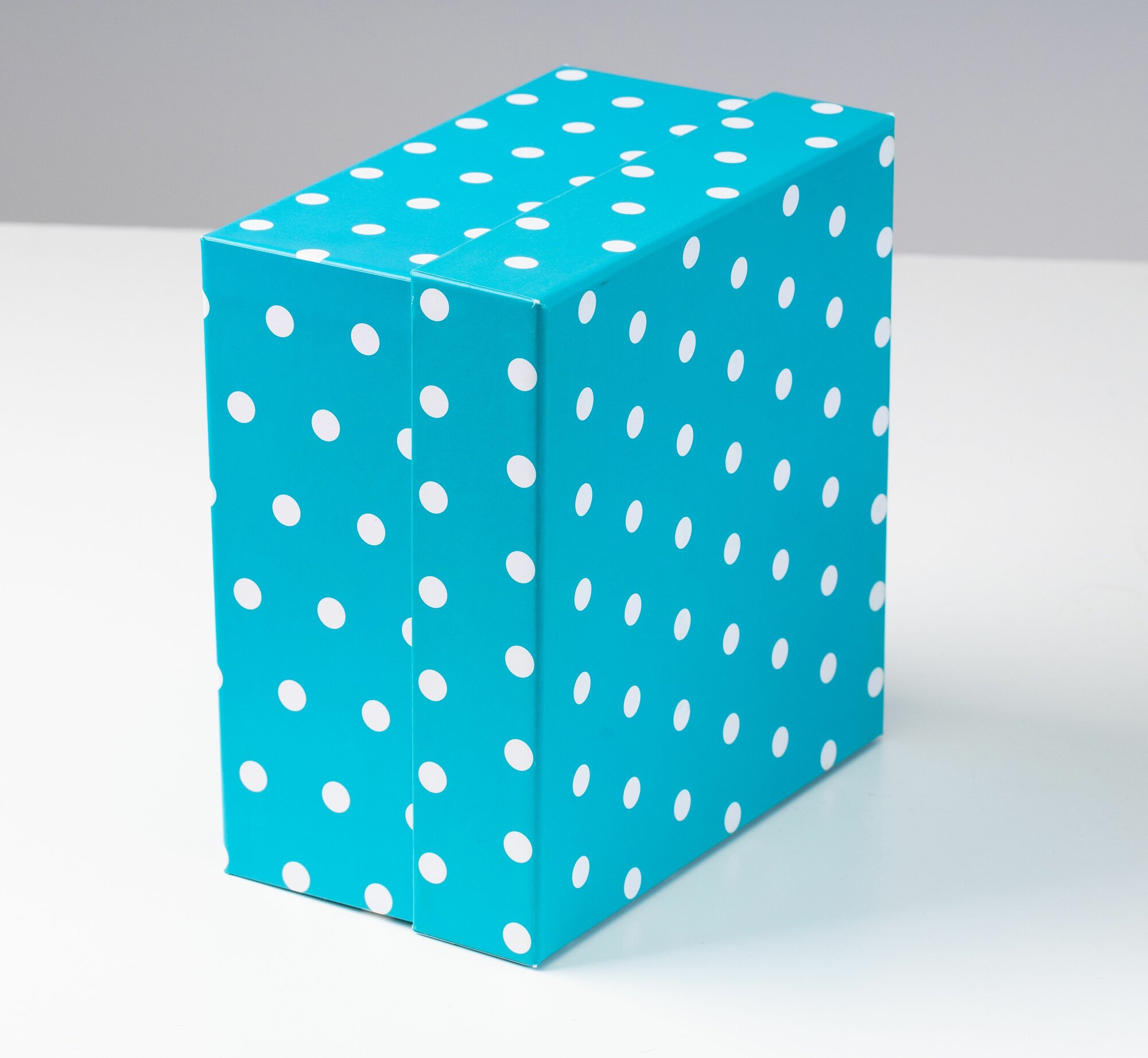 Купить Квадратная коробка крышка-дно, 19 x 19 x 10,5 см. "Веселые горошки", голубой, белый
