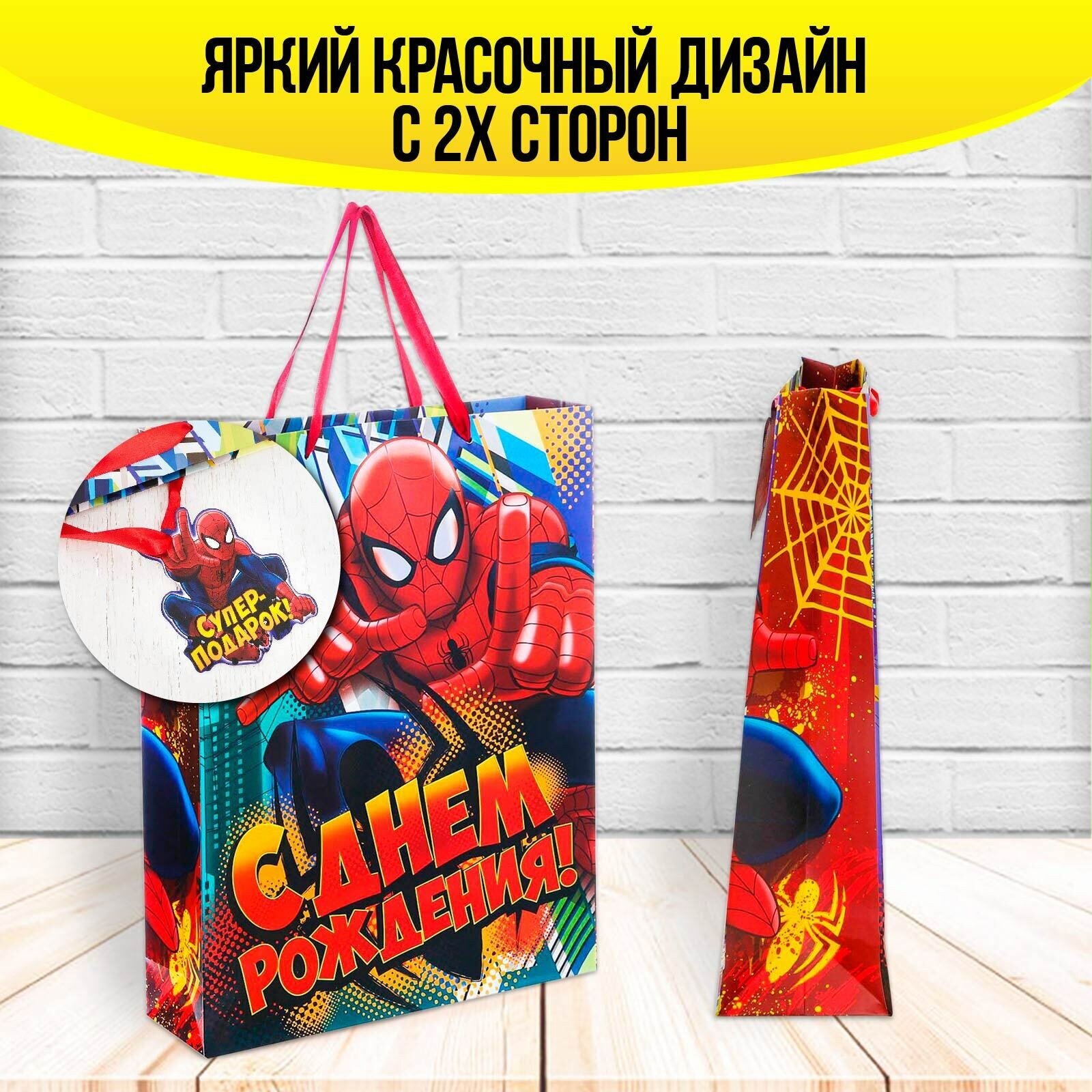 Подарочный пакет Марвел Человек Паук "С Днем Рождения", размер 31 х 40 см, для мальчика интересное: