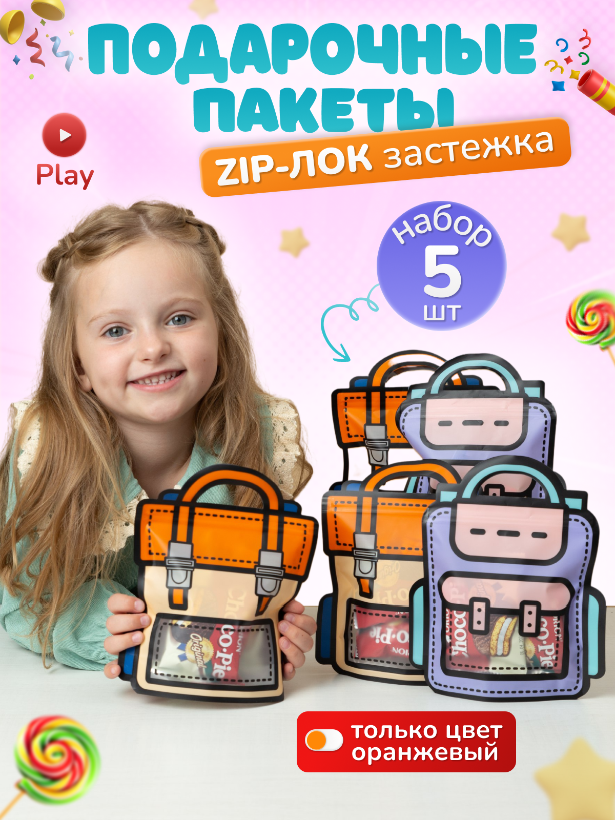 Купить Набор подарочных пакетиков для конфет в детский сад и школу (рюкзак), 5 шт.