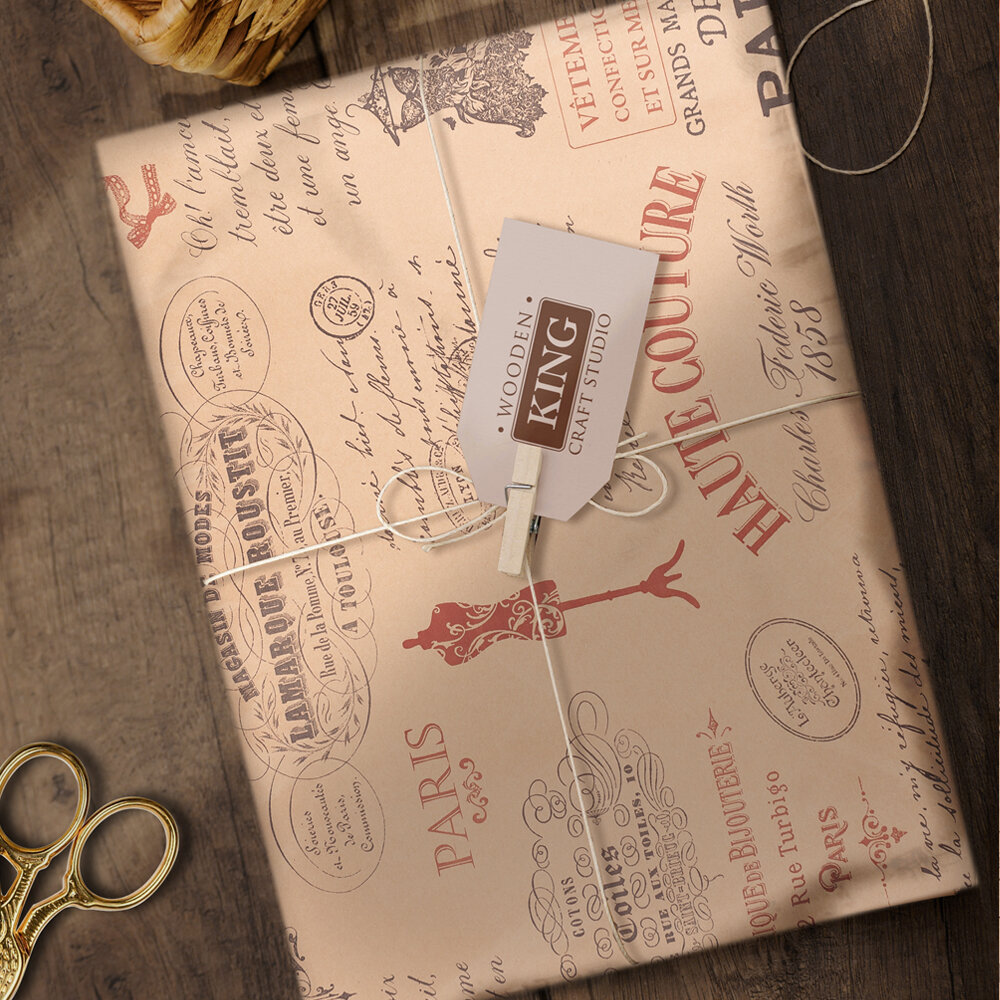 Упаковочная бумага Wooden Dreams "Новости Парижа" 60 см* 10 м, для подарков и цветов, подарочная, флористическая, рулон