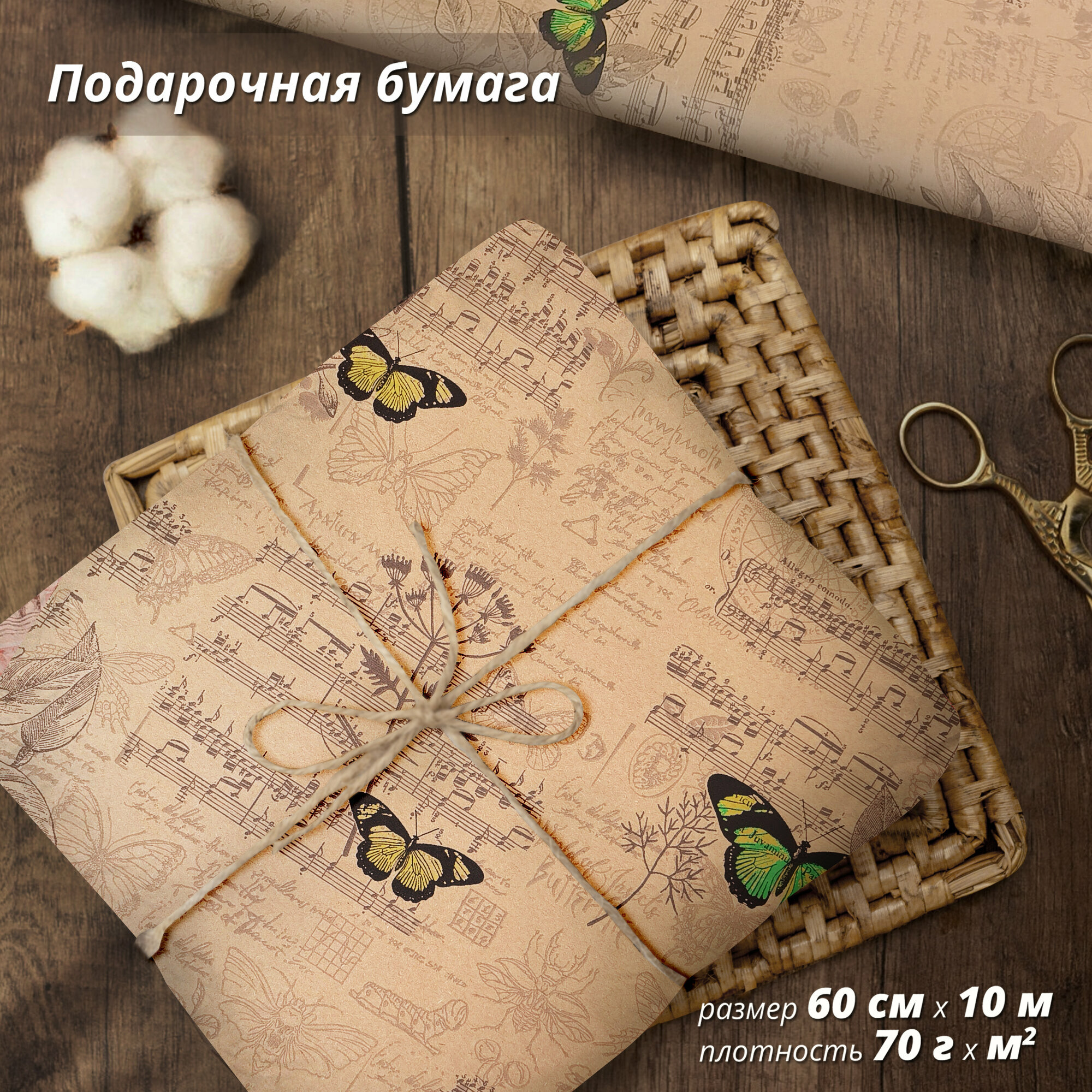 Купить Упаковочная бумага Wooden Dreams "Мелодия лета" 60 см* 10 м, для подарков и цветов, подарочная, флористическая, в рулоне