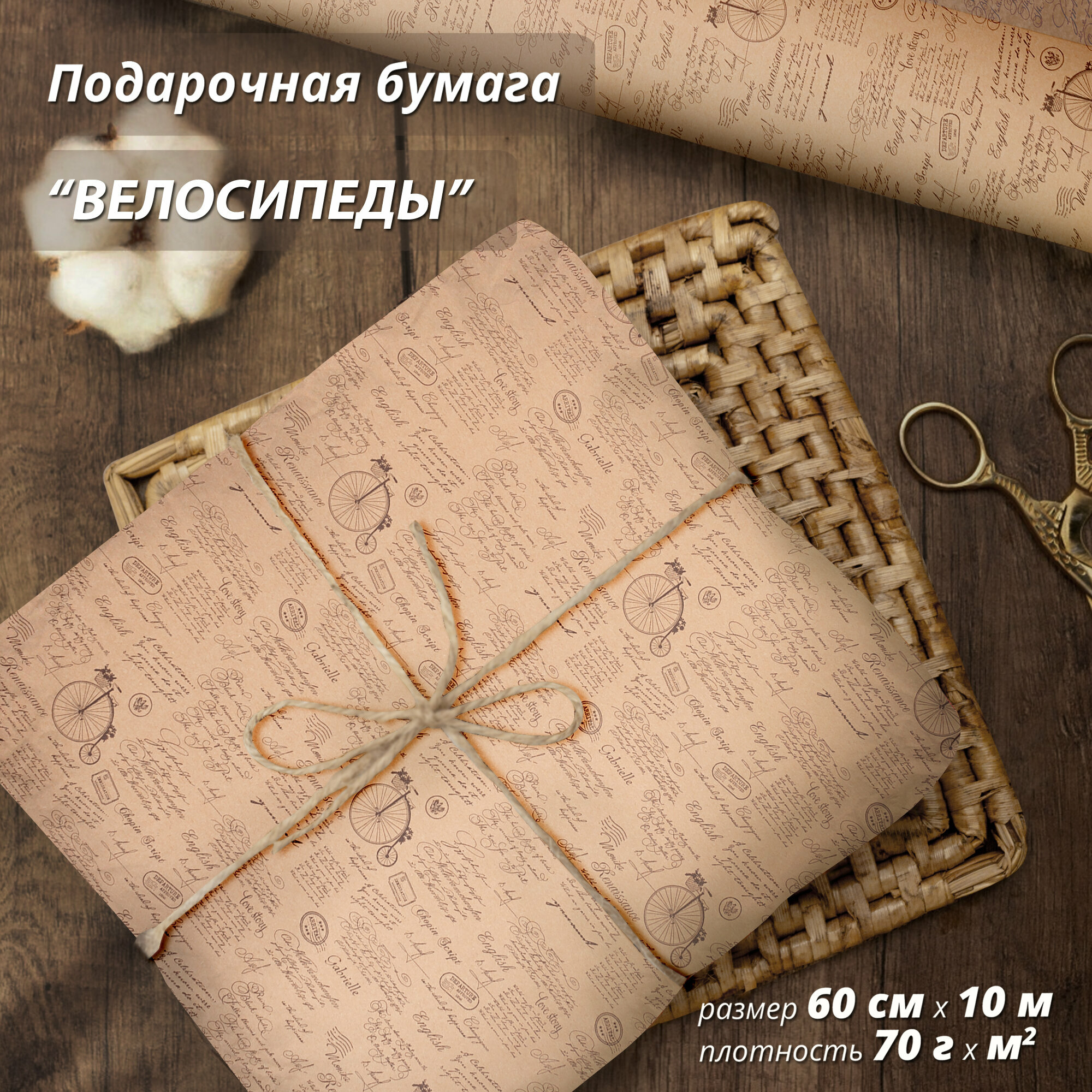 Купить Упаковочная бумага Wooden Dreams "Велосипеды" 60 см* 10 м, для подарков и цветов, подарочная, флористическая, в рулоне