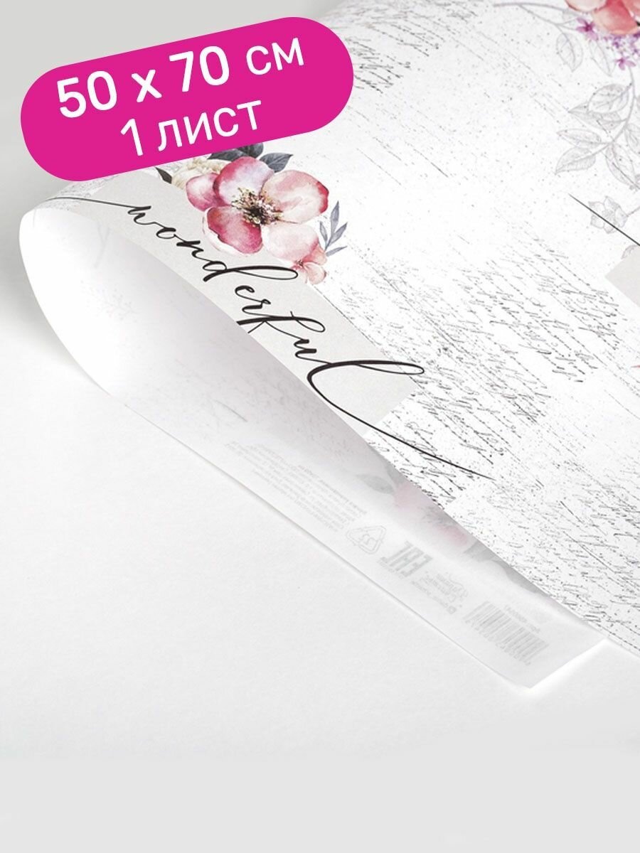 Бумага подарочная, упаковочная глянцевая Нежные цветы, белая, 50*70 см, 1 лист интересное: