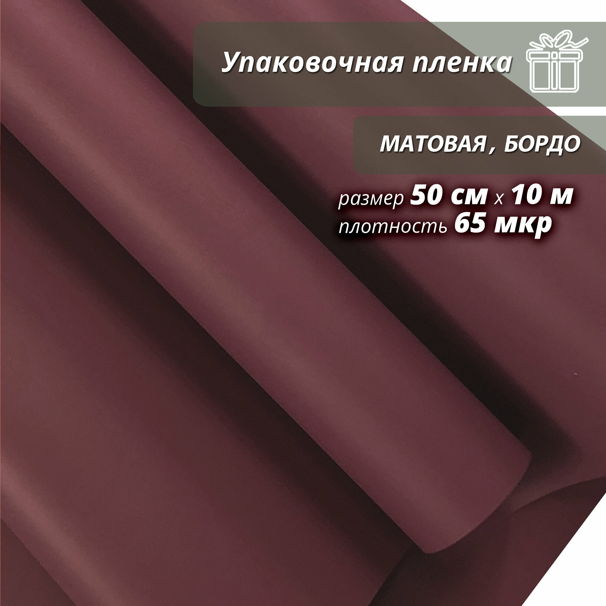 Купить Упаковочная пленка Wooden Dreams, 50 см * 10 м "Матовая", бордо, подарочная, для цветов и подарков, в рулоне
