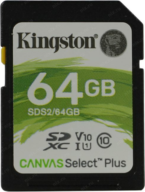Карта памяти SDXC UHS-I Kingston Canvas Select Plus 64 ГБ, 100 МБ/с, Class 10, SDS2/64GB, 1 шт., без адаптера