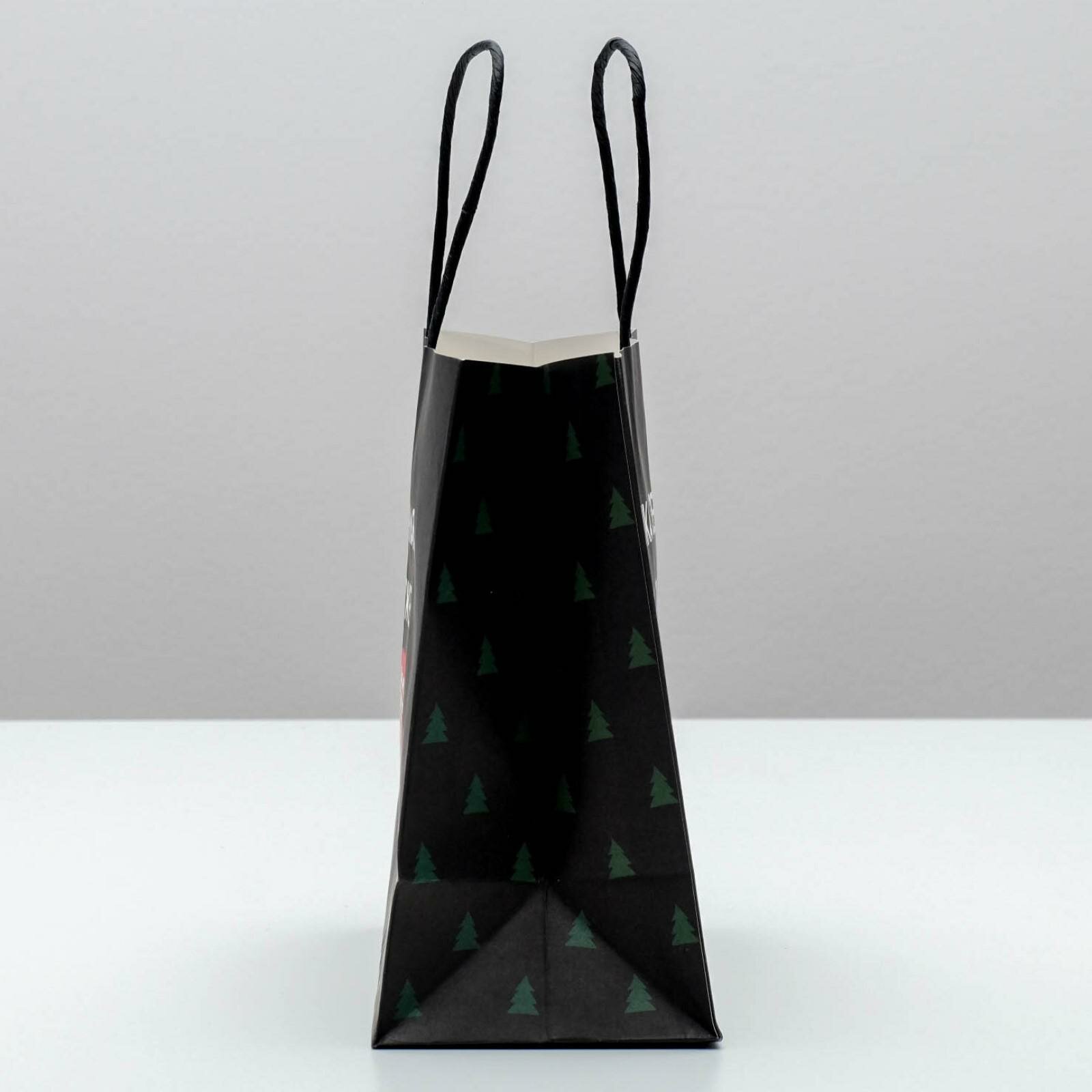 Пакет подарочный новогодний крафтовый квадратный "Новогодний мишка", 22 x 22 x 11 см