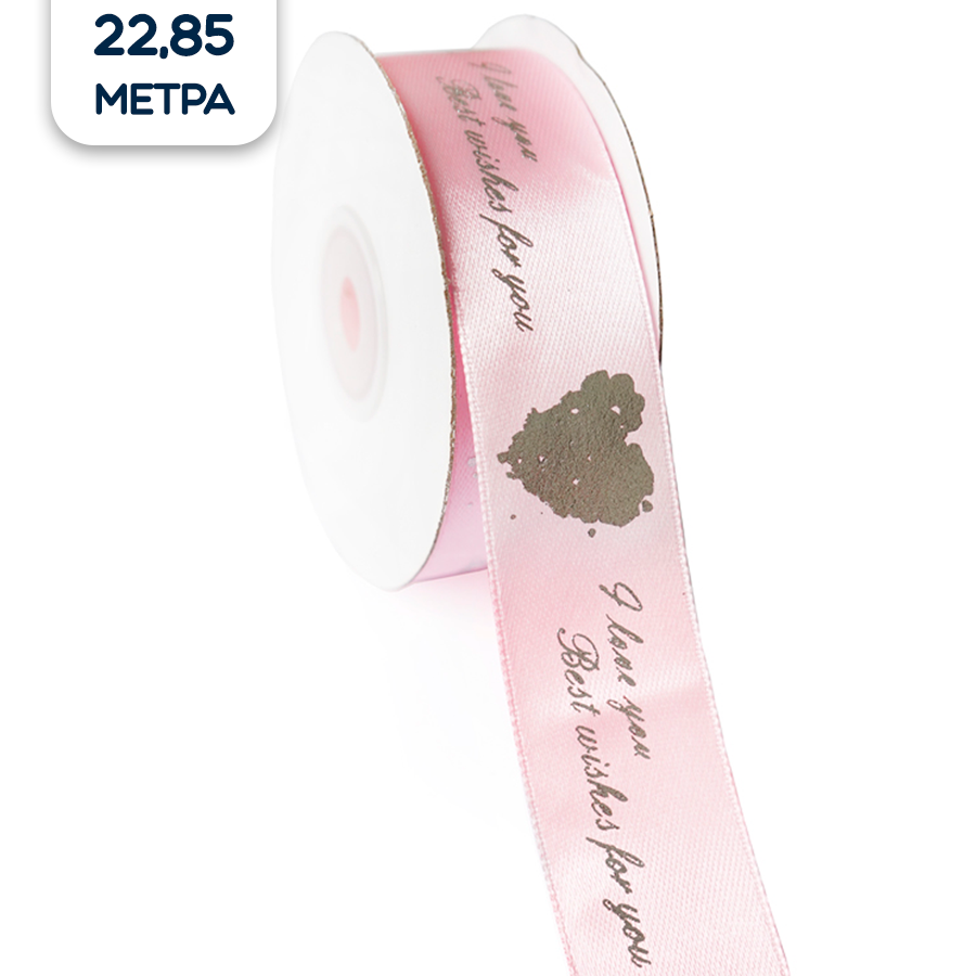 Лента атласная упаковочная Серебряное сердце, розовая, 2,5 см х 22,85 м интересное: