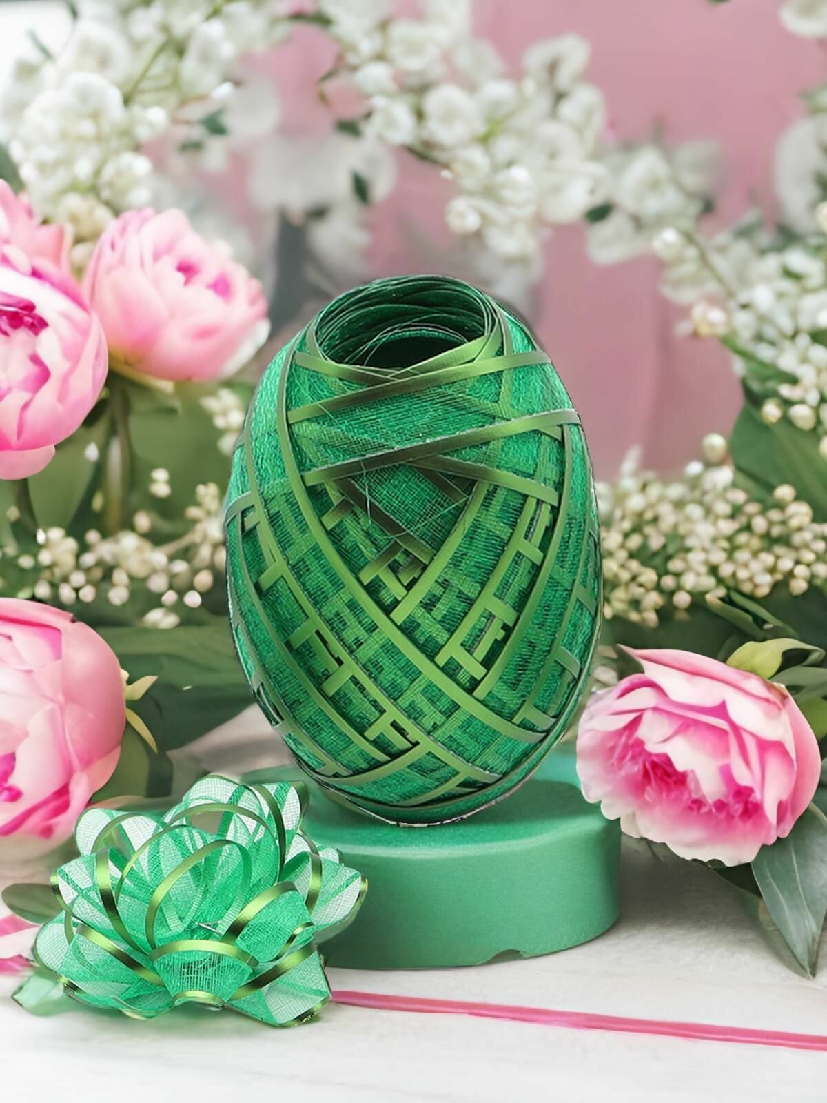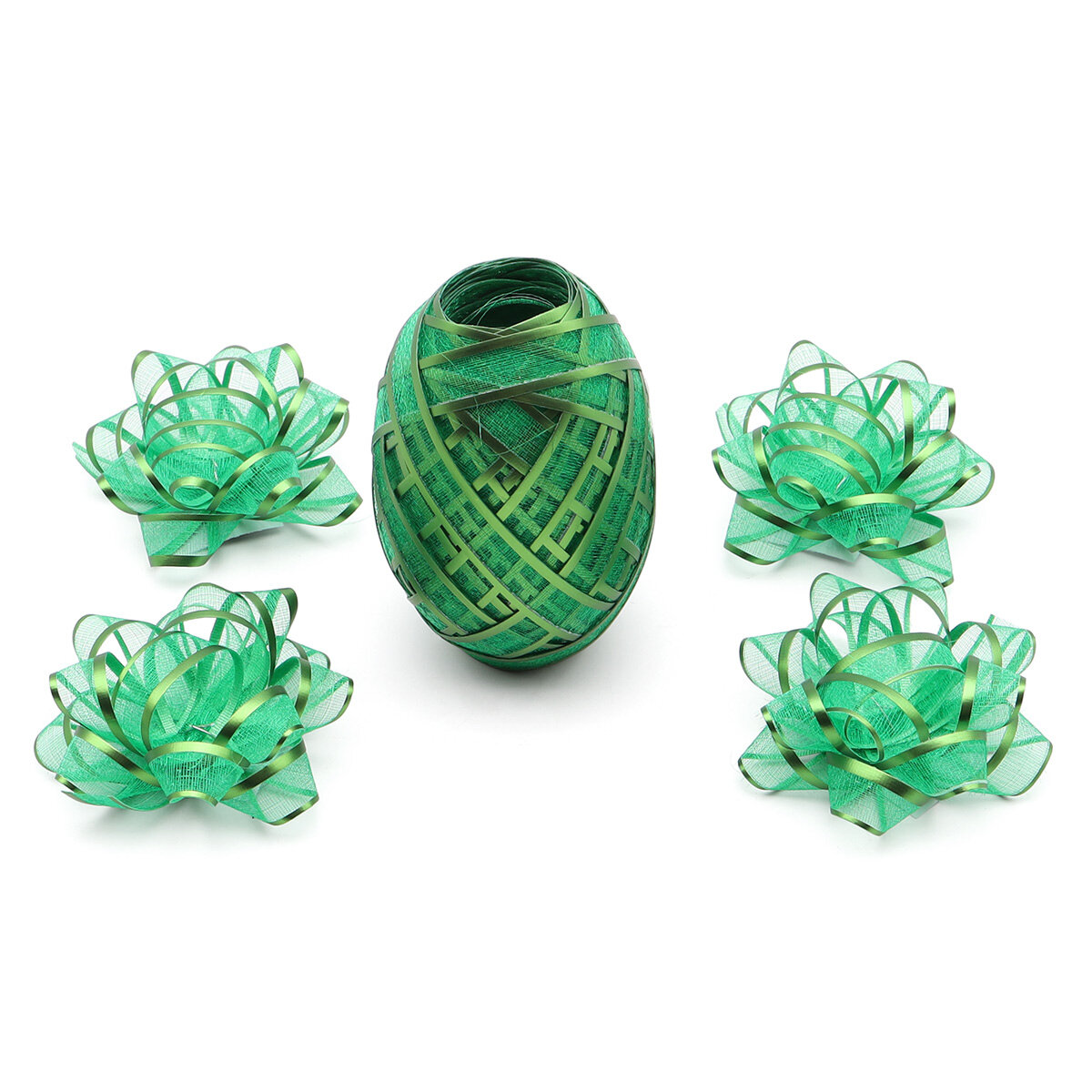 Купить Набор для упаковки подарка (лента 1см*10м и 4 бантика), зеленый