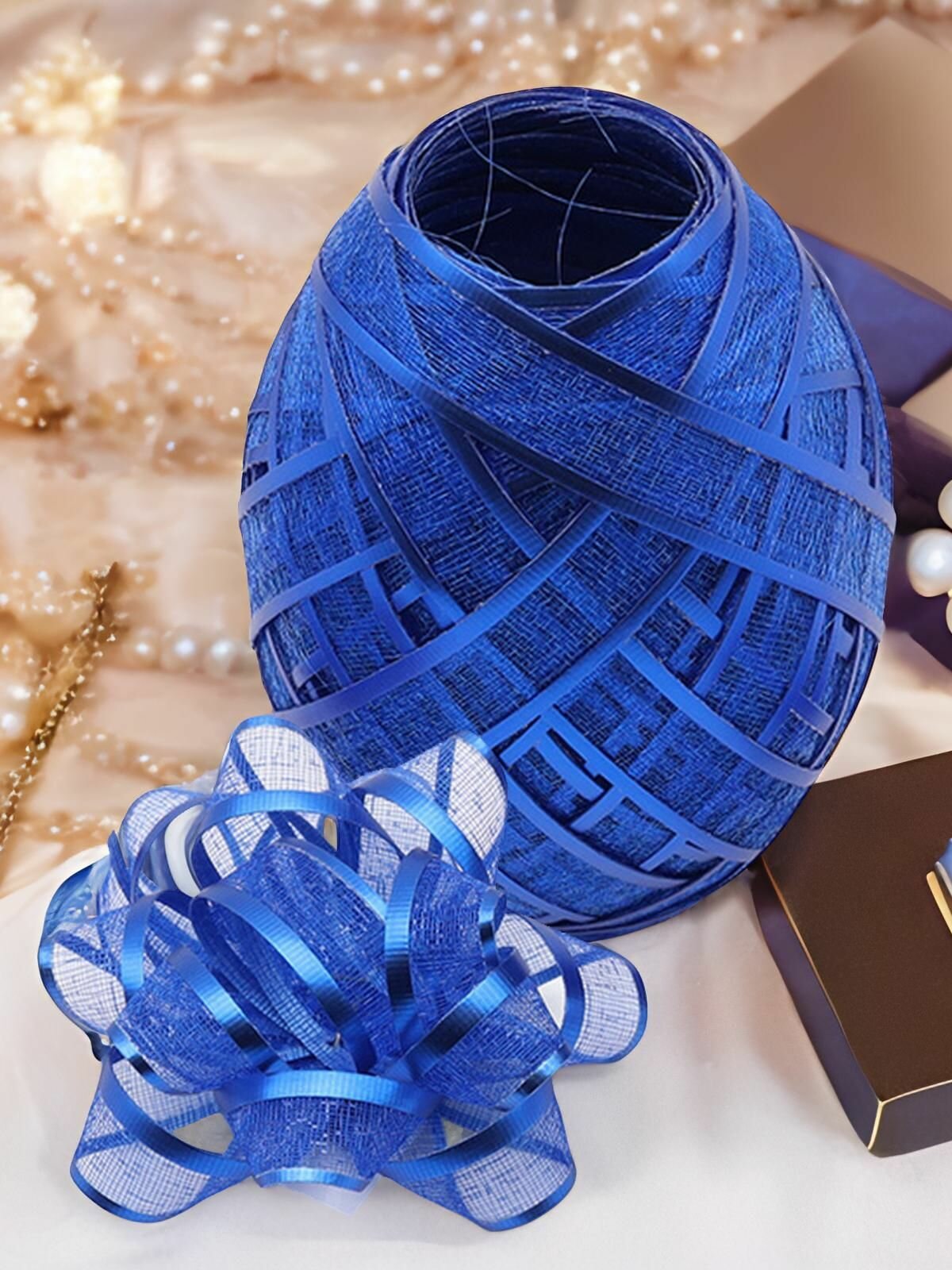 Купить Набор для упаковки подарка (лента 1см*10м и 4 бантика), синий
