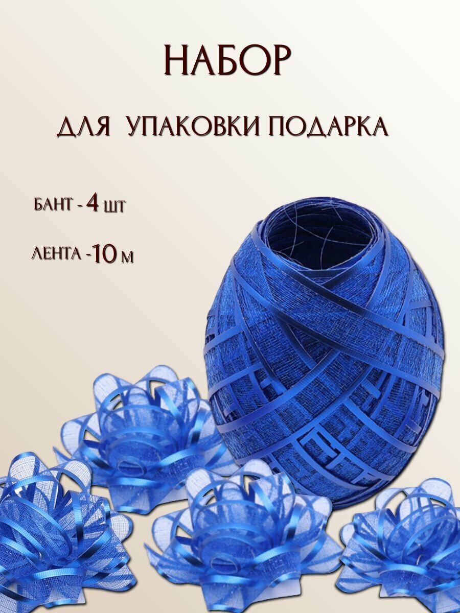 Набор для упаковки подарка (лента 1см*10м и 4 бантика), синий интересное: