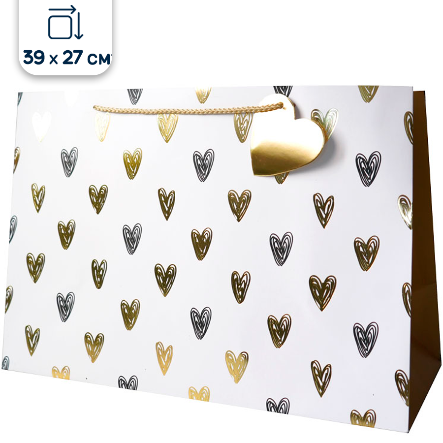 Подарочный пакет Riota "Сердечки", прямоугольный, 39x27x17 см