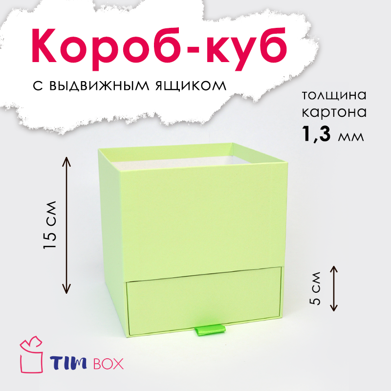 Короб кубический 15*15*15 см с выдвижным ящиком 5 см БЕЗ КРЫШКИ светло-зеленый интересное: