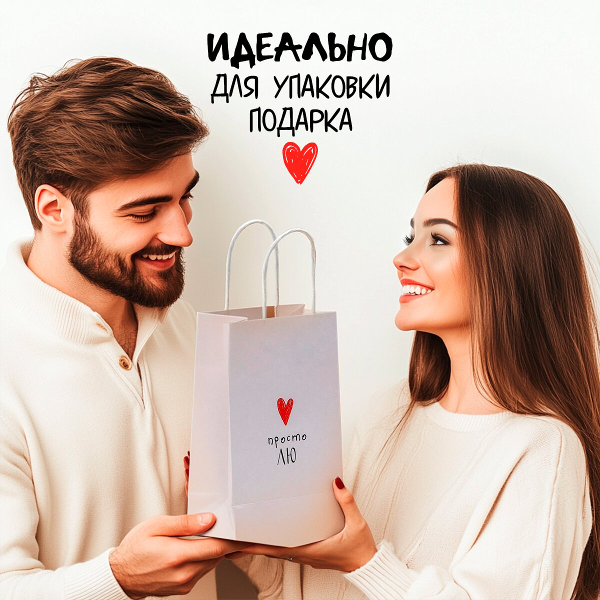 Пакет подарочный крафтовый, белый, «Просто Лю», 12 х 21 х 9 см, крученная ручка, для упаковки подарка интересное: