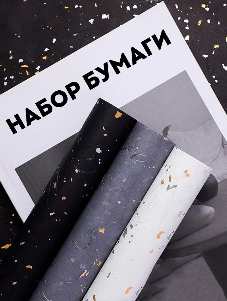 СохранитьНабор бумаги с вкраплениями золото/серебро для упаковки цветов, подарков 58х58 - 3 шт. белый, черный, серый интересное: