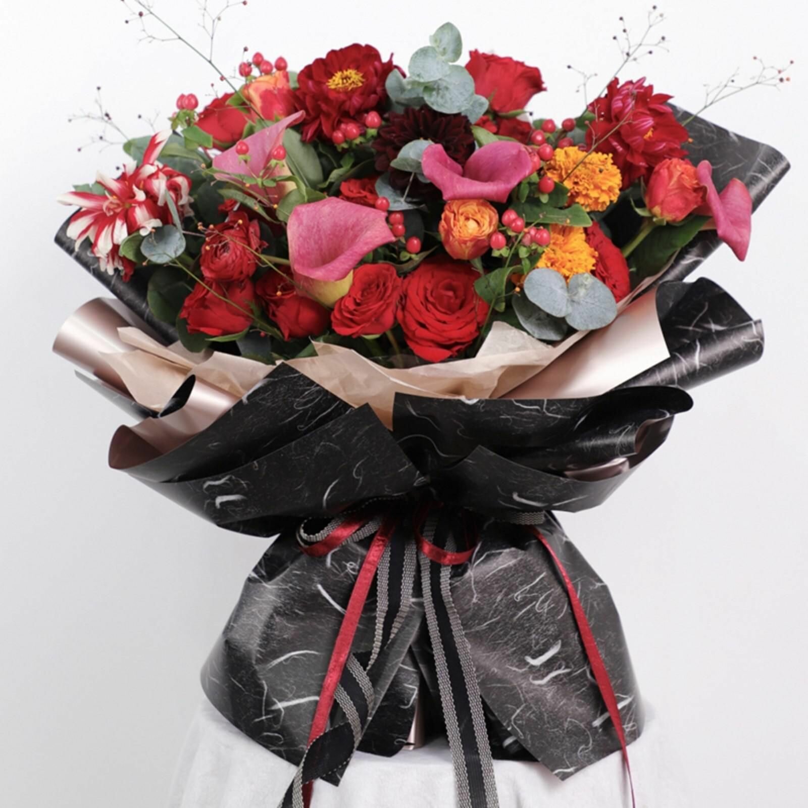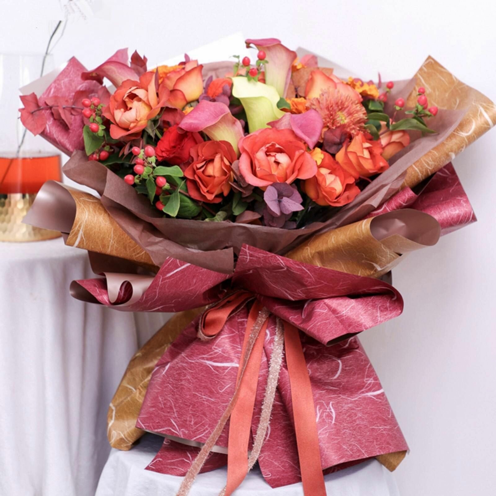 Пленка двусторонняя для упаковки цветов, подарков 58х58 - 20 шт. бордовый/розовое золото