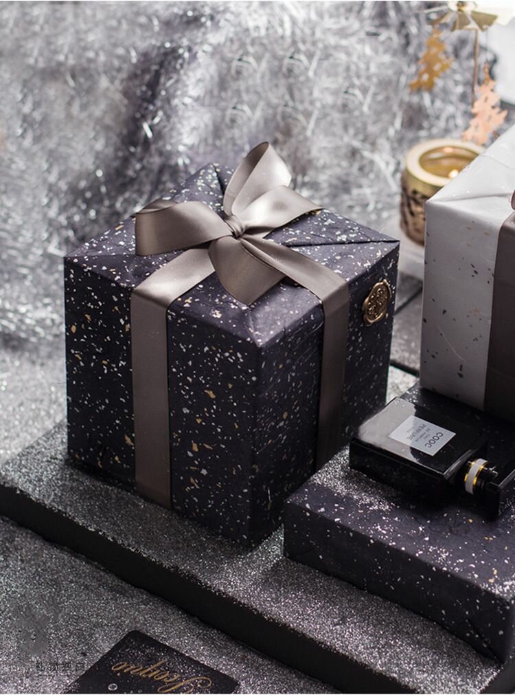 Набор бумаги с вкраплениями золото/серебро для упаковки цветов, подарков 58х58 - 3 шт. белый, черный, серый