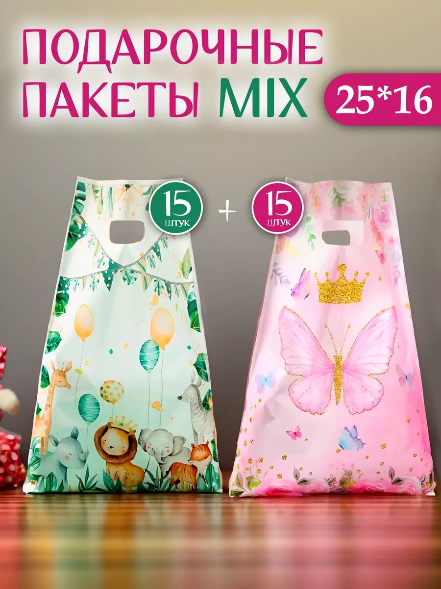 Подарочные пакеты набор 30 штук интересное: