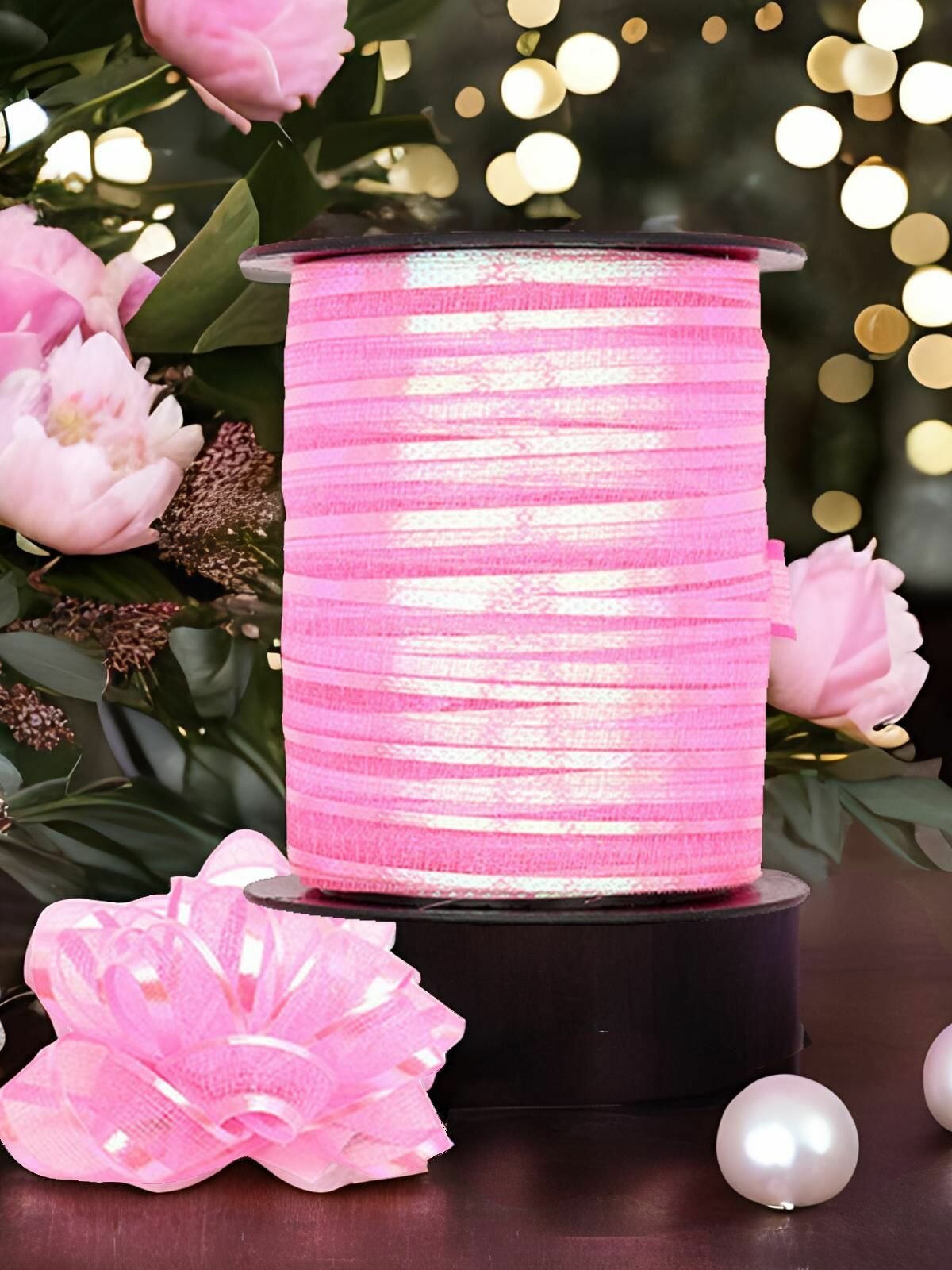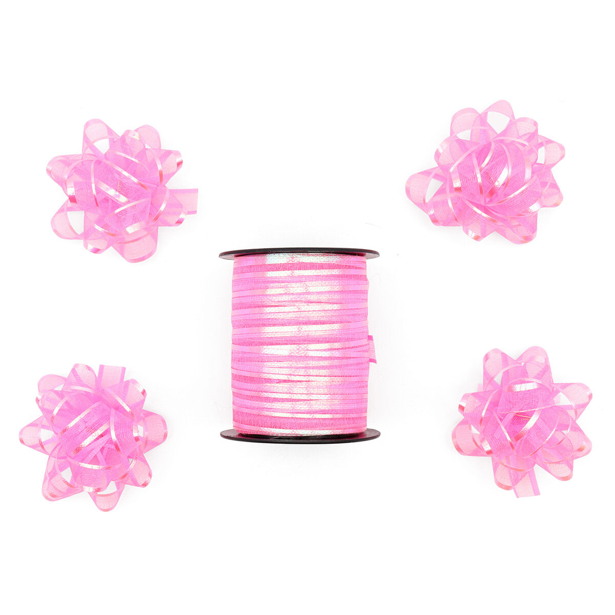 Купить Набор для упаковки подарка (лента 1см*10м и 4 бантика), розовый, Айрис