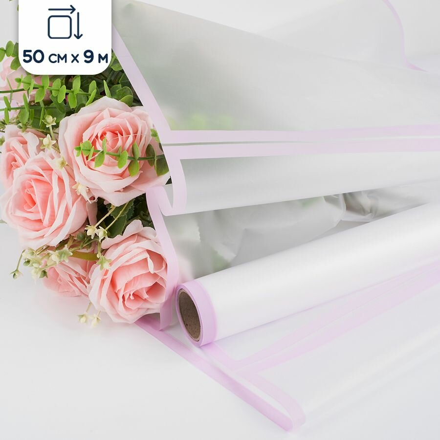 Купить Пленка упаковочная для цветов и подарков, прозрачная/сиреневая, 50 см х 9 м