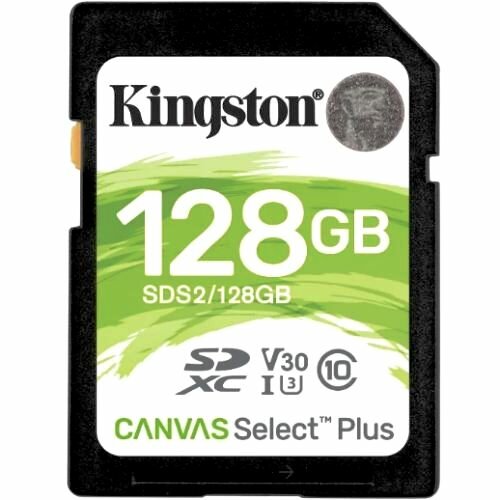 Карта памяти SDXC UHS-I U3 Kingston Canvas Select Plus 128 ГБ, 100 МБ/с, Class 10, SDS2/128GB, 1 шт., без адаптера
