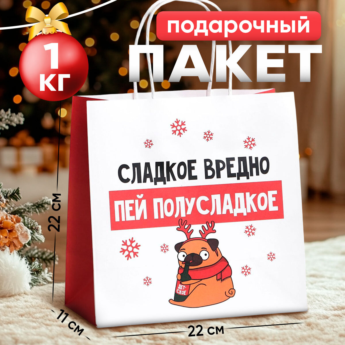 Подарочный пакет «Сладкое вредно», 22 х 22 х 11 см, крафт, для упаковки подарка на Новый год интересное: