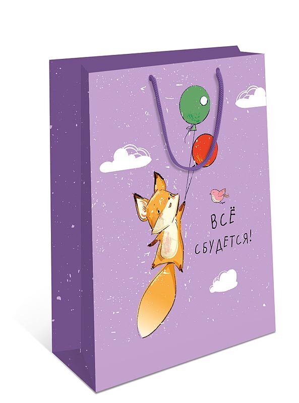 Купить Подарочный пакет "Арт и Дизайн", 18x22x10 см, бумага, дизайн животные, фиолетовый