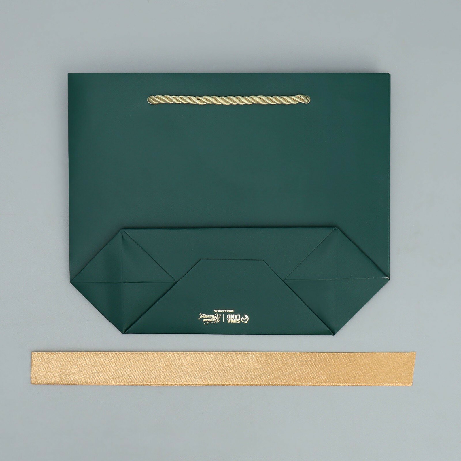 Пакет подарочный с бантом Present for you, 19 х 20 х 9 см, зеленый, лента в комплекте