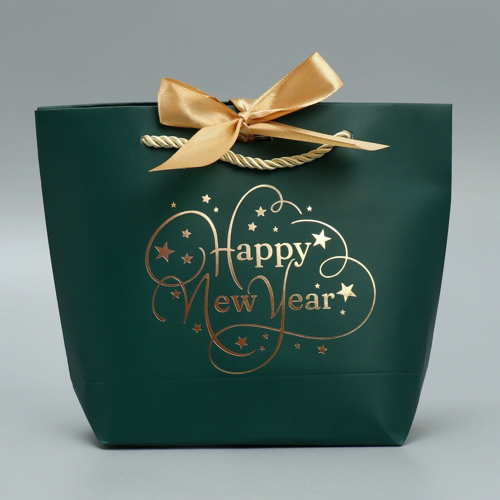 Подарочный пакет новогодний, тиснение «Счастья в Новом году», ML 23 х 27 х 11.5 см, для упаковки подарка на Новый год.