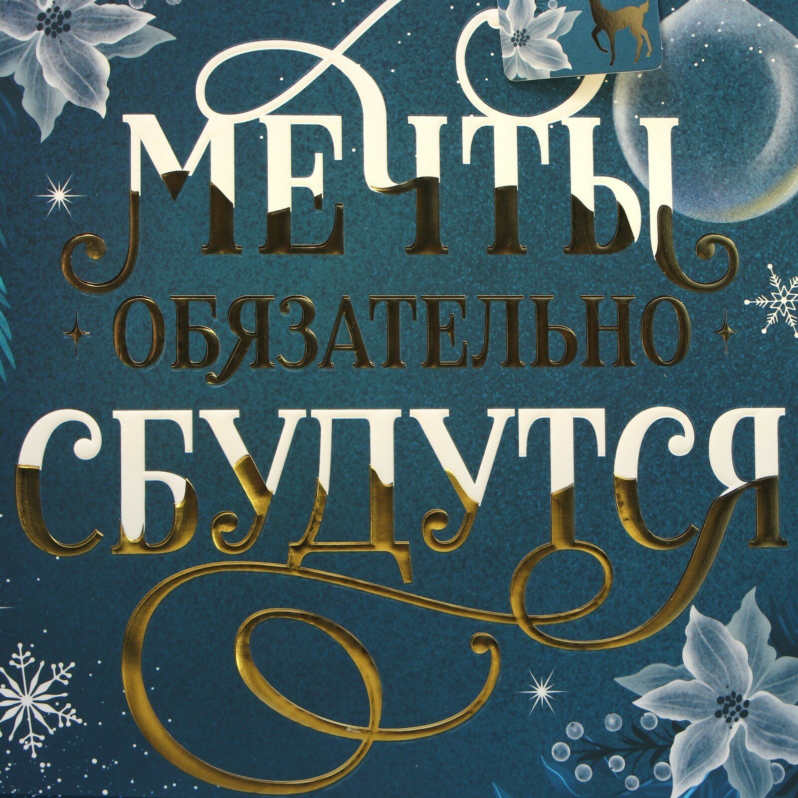 Купить Подарочный пакет новогодний, тиснение «Мечты сбудутся», ML 23 х 27 х 11.5 см, для упаковки подарка на Новый год.