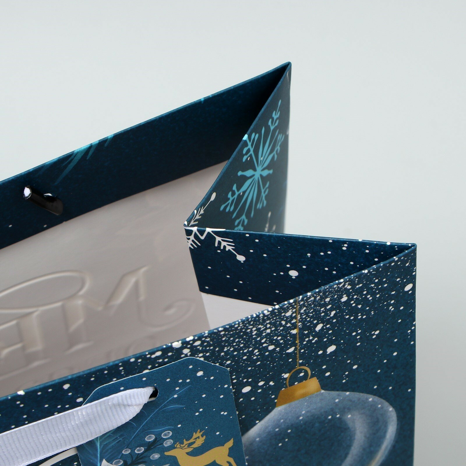 Пакет без ручек С Новым Годом , синий, с тиснением, 10 х 19.5 х 7 см, Новый год