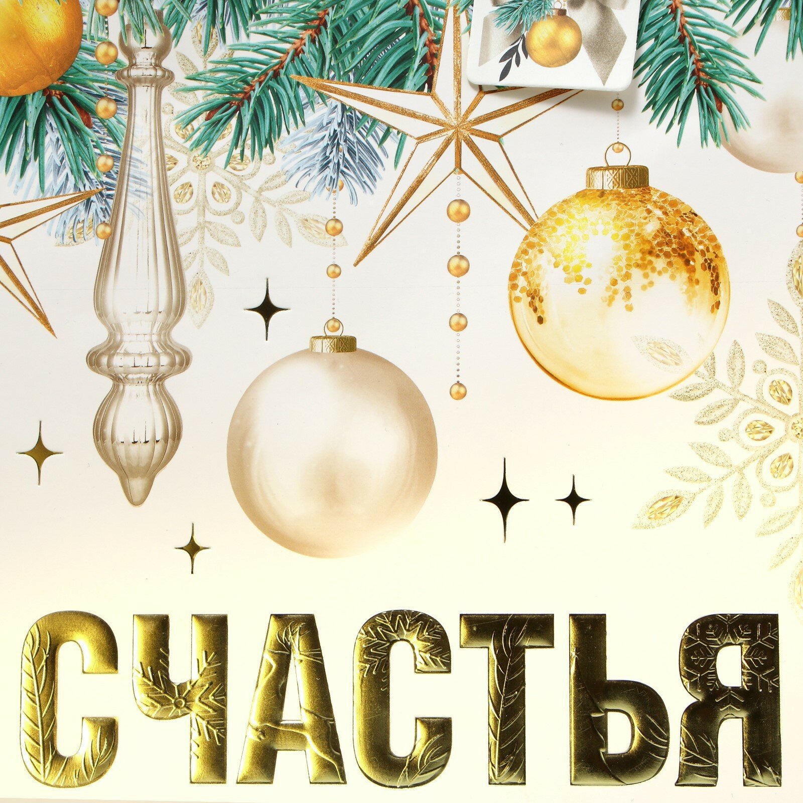 Купить Подарочный пакет новогодний, тиснение «Счастья в Новом году», ML 23 х 27 х 11.5 см, для упаковки подарка на Новый год.