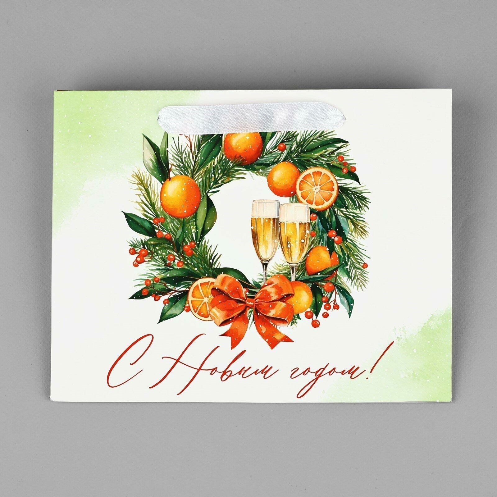 Купить Дарите Счастье Подарочный пакет новогодний ламинированный "Новогодний венок", мандарины, MS 18 х 23 х 10 см