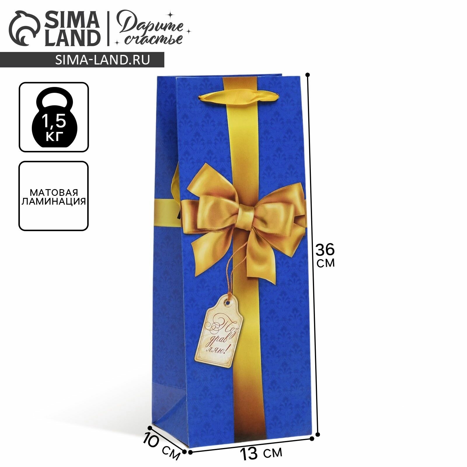 Купить Пакет подарочный под бутылку, упаковка, С бантом , 36 х 13 х 10 см