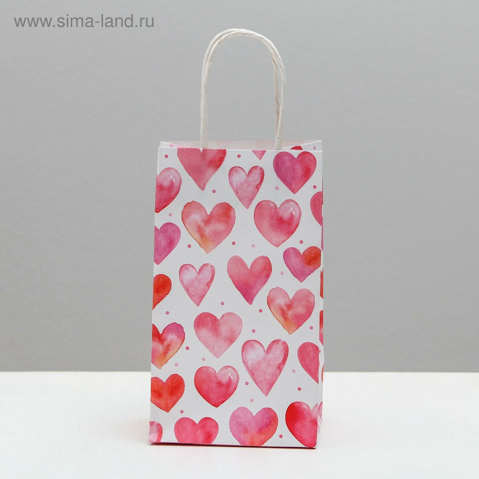 Подарочный пакет Riota "Сердечки", прямоугольный, 39x27x17 см