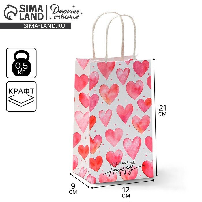 Купить Пакет подарочный крафтовый, упаковка, «Happy», 12 х 21 х 9 см 1шт.